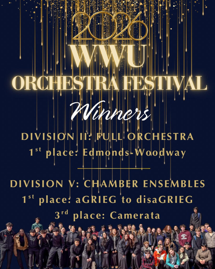 Edmonds-Woodway Full Orchestra placed 1st in the Division II category for Full Orchestra.